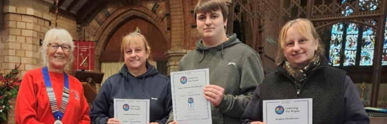 The sound of church bells ringing is something we all love to hear, but anyone who has ever tried it will know that it takes a lot of skill, plenty of practice and also gives you a good workout! In Taunton, three members of the same family, Angela Henderson, Jackie Henderson and Harry Thorne-Henderson have just achieved something very impressive – they’ve all been awarded the Association of Ringing Teachers’ (ART) highest level of achievement for students.